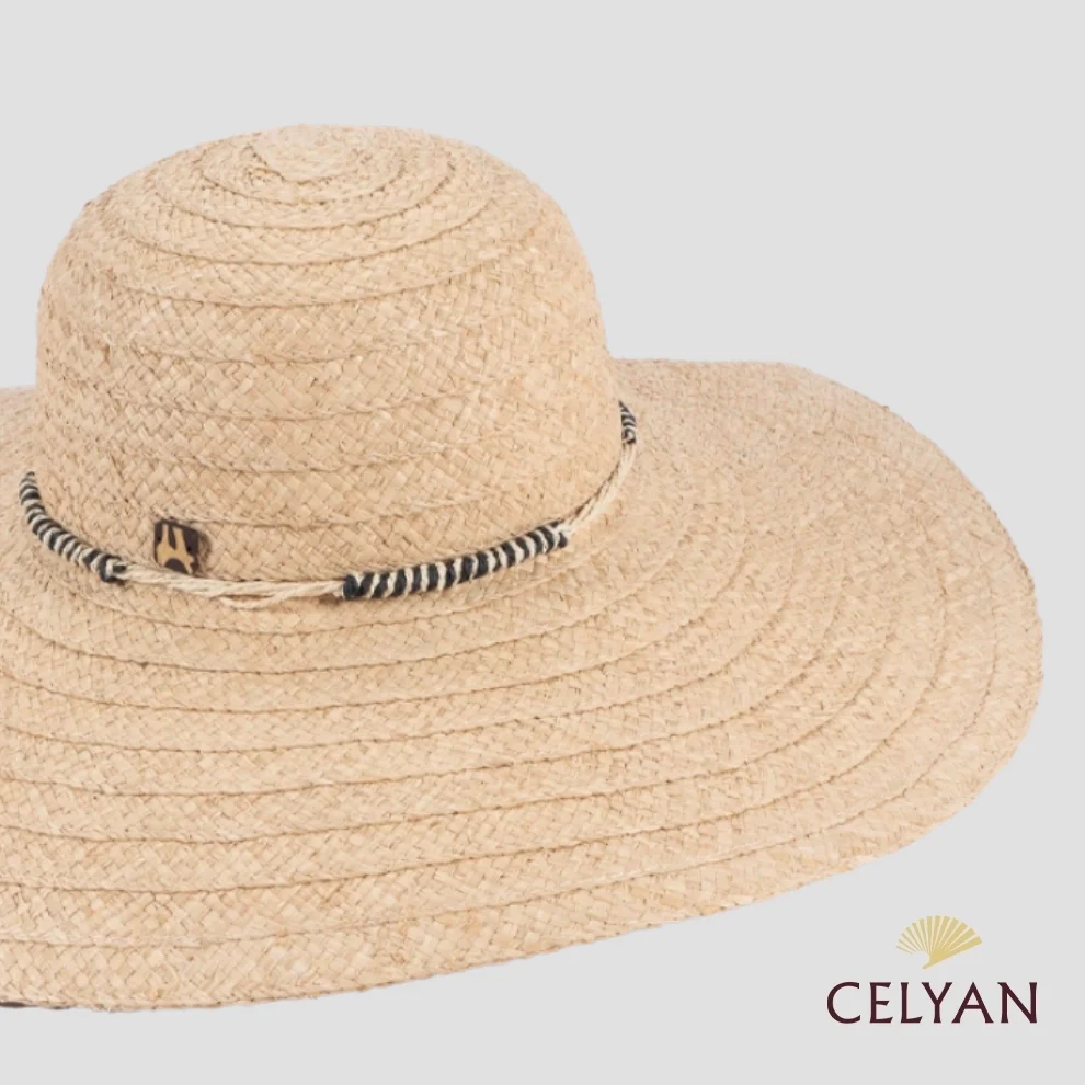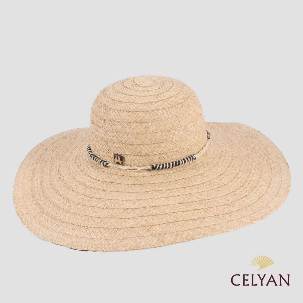 Está fabricado en un 100 % de rafia natural, una fibra natural resistente y duradera que es conocida por su capacidad para soportar el calor sin absorberlo, lo que lo hace perfecto para proteger tu cabeza en los días de sol intenso. Además, su ligereza y flexibilidad lo hacen fácil de llevar contigo a cualquier lugar.