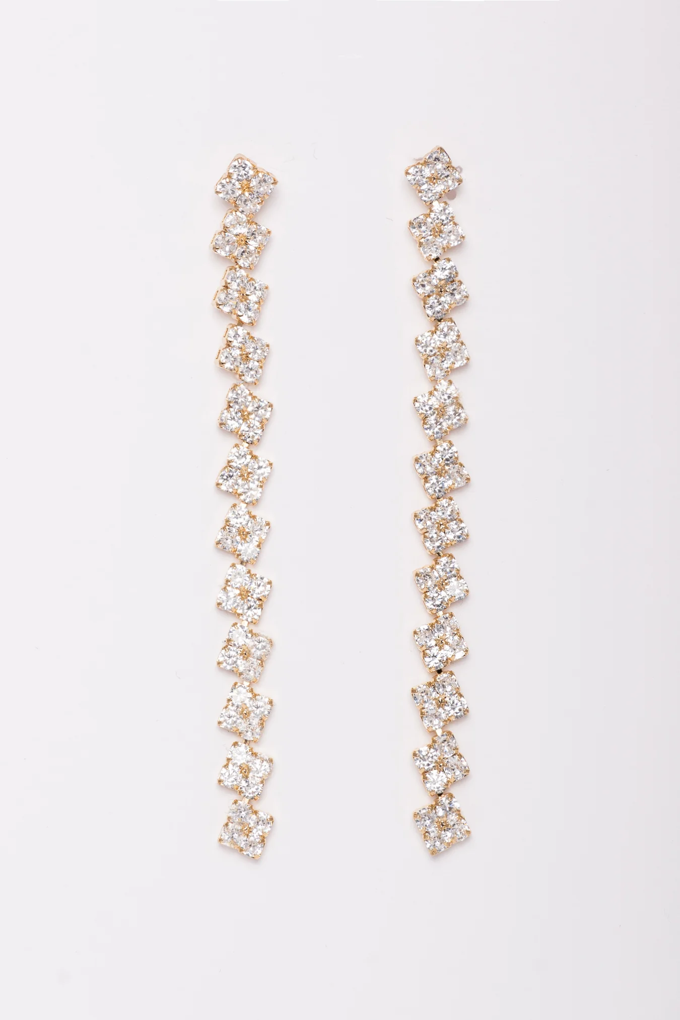 Los Pendientes Flor son unos pendientes largos compuestos múltiples aros y circonitas baguette,