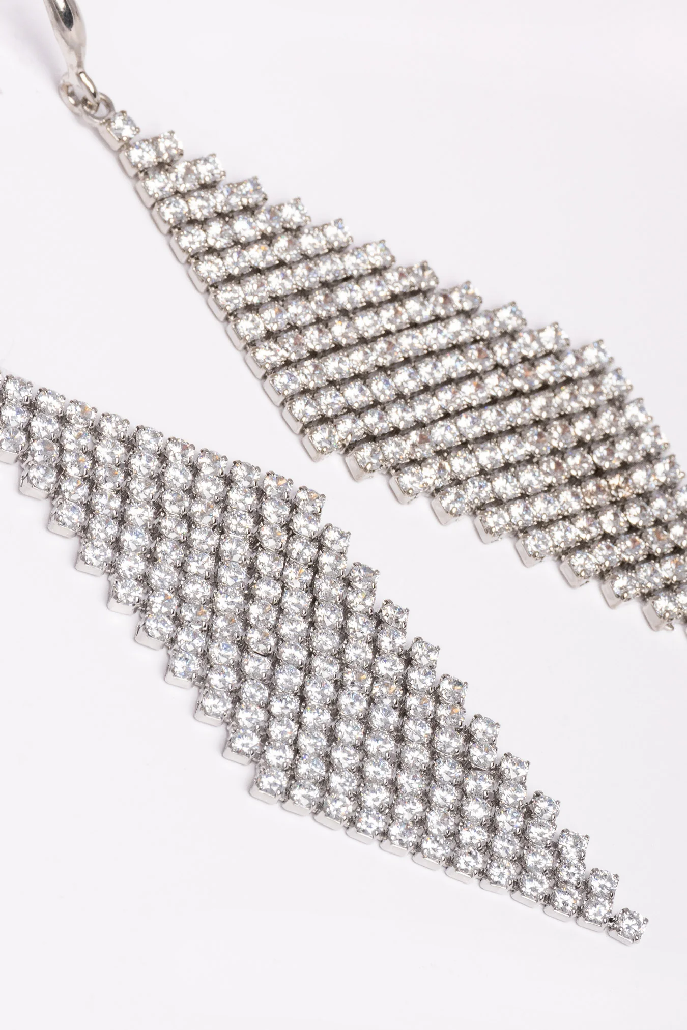 Los Pendientes Lirio son unos pendientes largos que destacan por su diseño geométrico y el brillo de las circonitas,