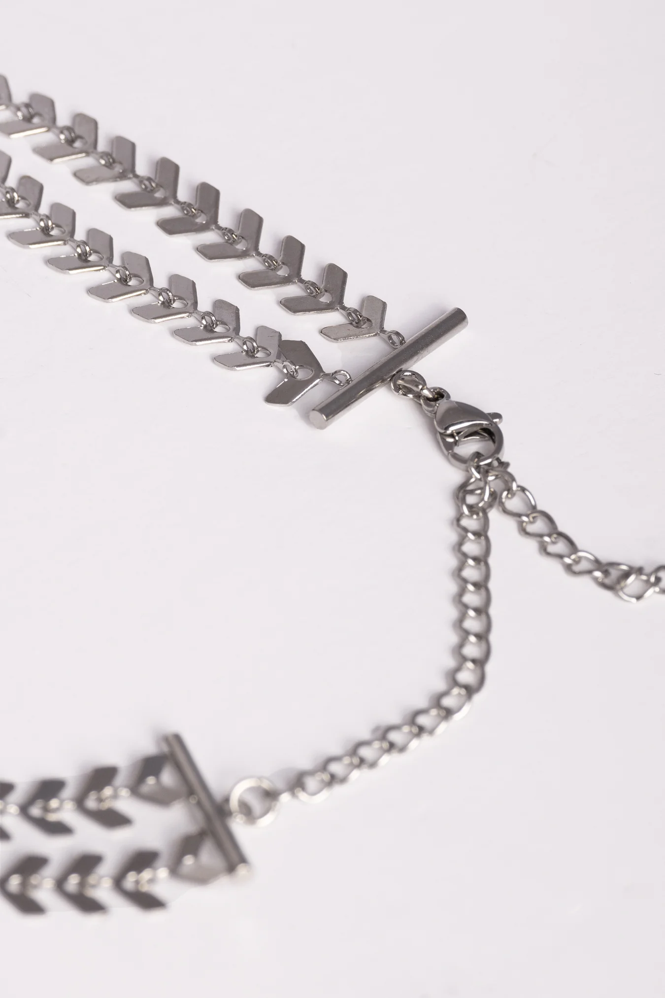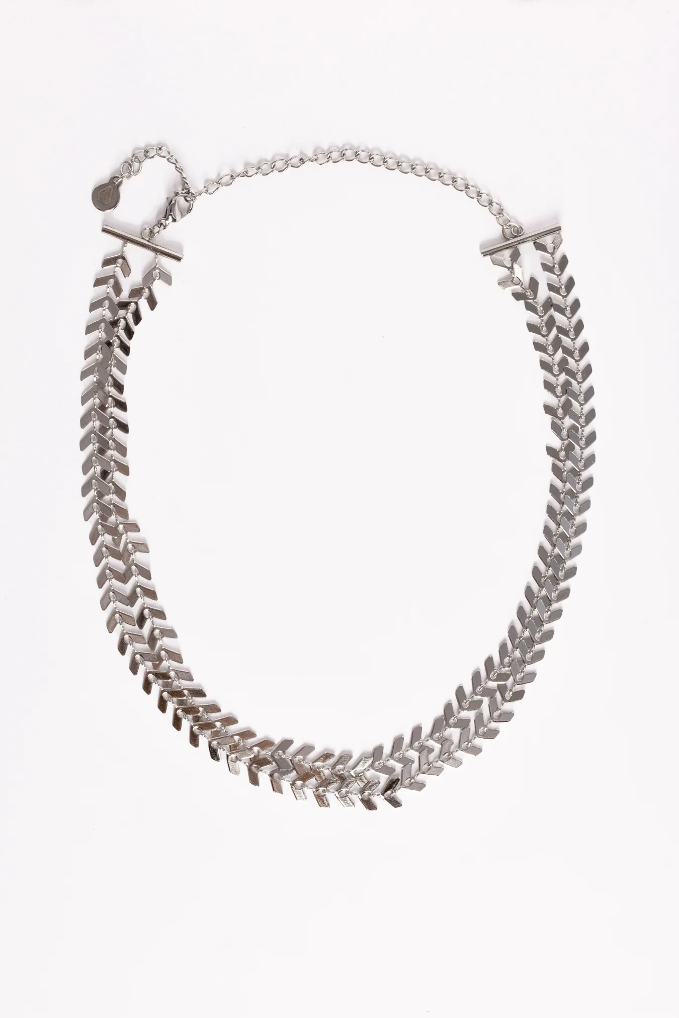 El Collar Double Laurel es collar corto compuesto por dos cadenas en forma de espiga.