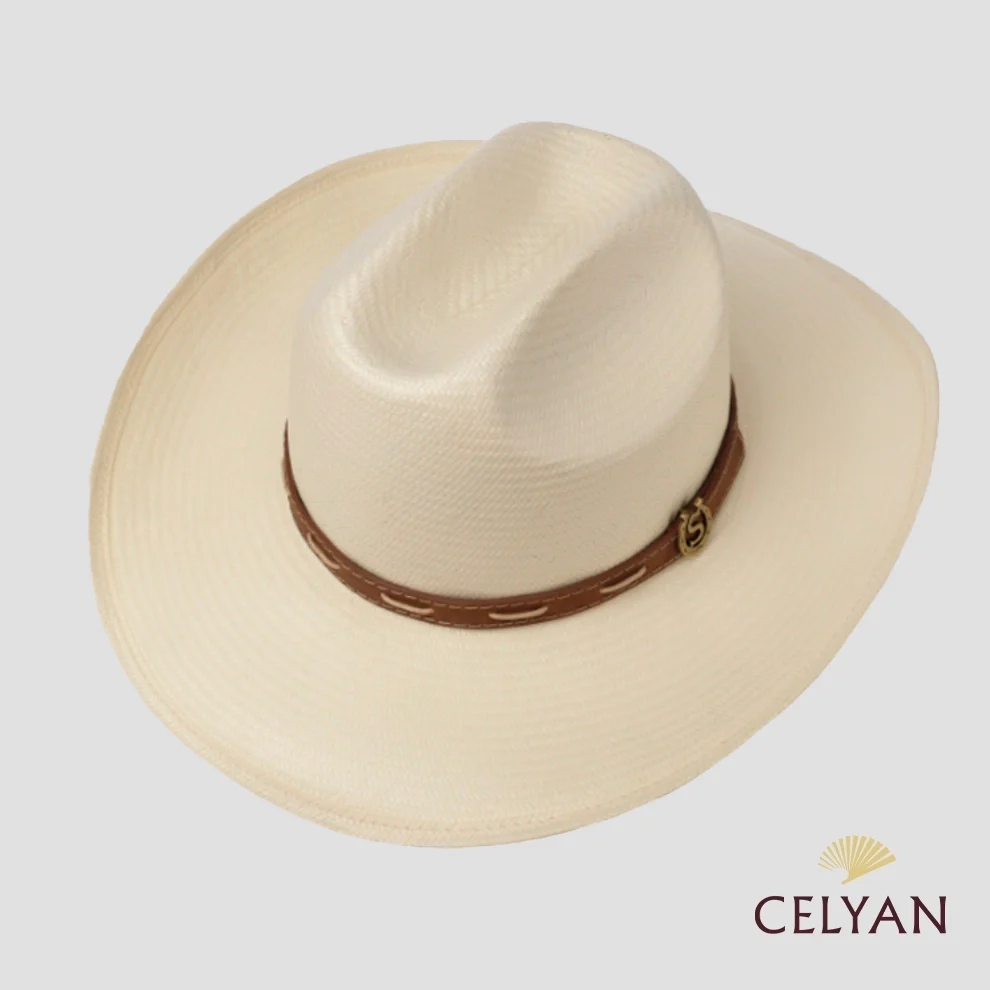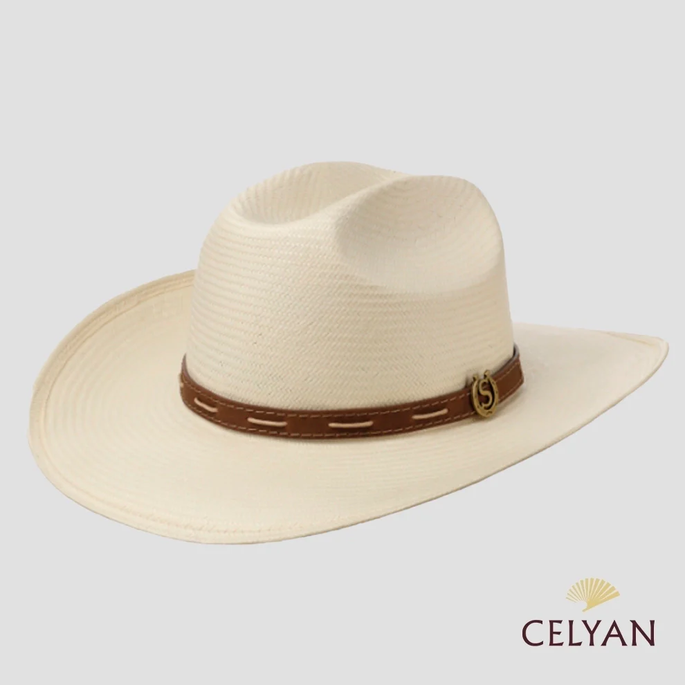 La paja toyo es la alternativa inteligente a los materiales naturales, confeccionada con celulosa. De ella surgen fibras resistentes al tiempo que flexibles que, confeccionadas con laboriosidad, se convierten en modernos sombreros veraniegos. Ofrecen la máxima protección contra el sol y también resisten las tormentas de verano. La clásica corona Cattleman le aporta al sombrero del oeste un aspecto dinámico y elegante. Sin embargo, no son solo los pliegues centrales característicos y los profundos pliegues de la corona los que aportan dinamismo. El borde ancho, claramente curvado hacia arriba en los laterales, también hace que el sombrero sea el centro de todas las miradas.